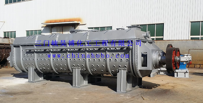 1、用導熱油做熱介質(zhì),槳葉干燥機可完成低溫煅燒工作。如:二水硫酸鈣(Ca2SO4·2H2O) 煅燒轉(zhuǎn)化為半水硫酸鈣(Ca2SO4·1/2H2O)。碳酸氫鈉(NaHCO3)經(jīng)煅燒 轉(zhuǎn)化為純堿(Na2CO3)等。