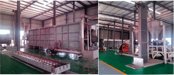 環(huán)保金礦選礦劑的生產(chǎn)是要求將五種固體原料按照一定的配比要求,進行高溫長時間的混合反應(yīng)后,在高溫段轉(zhuǎn)化成高溫液體,經(jīng)過冷卻并機械破碎后轉(zhuǎn)化成固體小顆粒,包 裝出廠銷售與使用。其中,需要經(jīng)過高溫反應(yīng)與混合的物料 有三種,另外兩種物料在粉碎后另外添加并混合均勻。